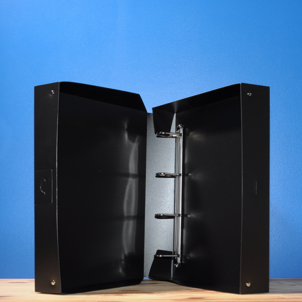 Il est surdimensionné pour accueillir les feuillets de négatifs ainsi que des planches-contacts au format 24 x 30 cm.