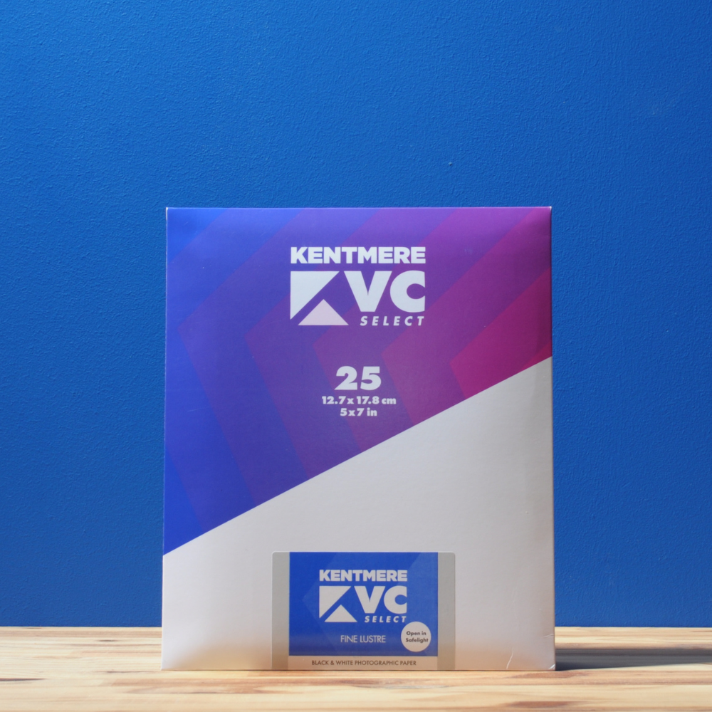 Kentmere VC Select papier photo lustré à contraste variable, idéal pour tirages noir et blanc avec une finition douce, des tons neutres et une grande flexibilité.